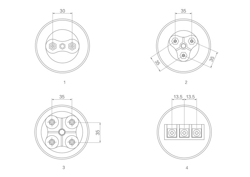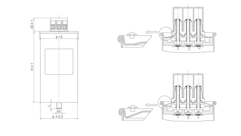 。35~50 kvar: Dreieckklemme (<400 V); Schraubklemme (>400 V)